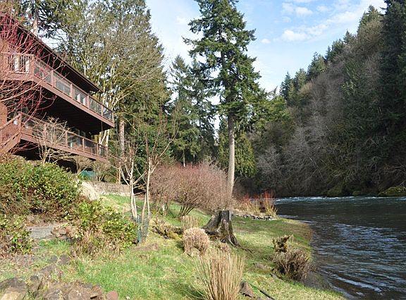 Kalama Riverfront home. Beautifully remodeled home on .5 acres on the Kalama River with 120 feet of accessible beachfront. This remodeled, three-level, 3,800 SF home features 3 bedrooms and 3 bathrooms as well as a detached garage with an additional studio apartment with access to a 4th bathroom. The superior view lot and timeless architecture with many windows and sliding glass doors create optimal viewing. The 200 linear feet of decking also help the sighting of indigenous wildlife such as osprey, otters, beavers, blue herons, eagles, salmon and steelhead. Peace and serenity await you; live like you are on vacation. Located just 6.1 miles from I-5 at exit 32.