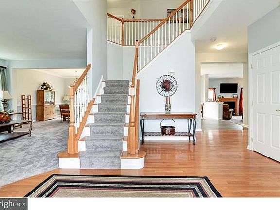 Located in beautiful Garrison Estates. From the covered porch, entering this beautiful home you are greeted by an impressive 2-Story Foyer, wonderful open floor plan with 9'ceilings and gorgeous hardwood floors. The versatile floor plan offers a first-floor study with cathedral ceiling and French Doors leading to a formal living room and dining room with chair rail and crown moldings and an expanded Family Room with a cozy gas Fireplace with accent lights above fireplace, perfect for relaxing and entertaining. You will love cooking in the spacious kitchen with island workstation, Corian countertops, 42" cabinets, brand new flooring, recessed lighting and breakfast room with sliding glass doors leading to the private back yard. Upstairs boasts a huge master bedroom with french doors and sitting area, cathedral ceiling and a luxury master bath room with a double vanity, soaking tub, and a generous walk-in closet. 3 additional well-sized bedrooms, hall bath and laundry room complete this level. The walk-out basement which is as large as the first floor, offers tons of potential for additional living space. 9ft ceilings and rough plumbing for an additional bathroom. This home is just minutes from Inspira Medical Center and Rt. 55.