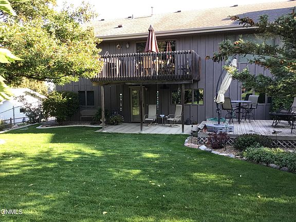 Ranch style in a peaceful NE Bismarck neighborhood with a private backyard & heated 2-car garage! This well-kept home has had many updates including: furnace & a/c unit 2020, kitchen appliances 2017, water heater 2017, driveway 2010, washer 2020. The spacious foyer opens to the spacious, sun-filled living room & dining room offering cathedral ceilings, sliding glass door to the balcony deck overlooking the fenced backyard, and brick wall with wood-burning fireplace. The eat-in kitchen has stainless steel appliances, convenient layout, oak cabinets & breakfast nook area. The primary suite is on the main floor with a walk-in closet and en-suite. There's also a ½ bath on the main floor. Down in the finished walkout basement you will find a family room with backyard access, spacious bathroom with dual sinks, laundry room, 2 spacious bedrooms with above-ground windows, and storage room with shelving & workbench. You'll love the fenced yard with mature trees in the back allowing privacy and professional landscaping with curbing, garden spot & sprinklers.