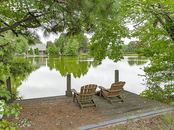 Your own private lake house!! 2+acres with a pond in Apex! Everything about this property is an oasis. The outside boasts over 2 sprawling acres (that could even host horses), an expansive deck, jacuzzi, fire pit & personal gazebo. The best part is the dock & pond; bring your paddleboard or just sit back, relax & enjoy views. Kitchen is a chef's dream: upgraded appliances, 4 ovens (2 wall & 2 in stove), double dishwasher, double sinks & a 60" Wolf gas range. Vaulted ceilings plus skylights make this home feel bright & airy, while the post & beam walls give it the warm and cozy feel. Some of the other features include (but not limited to), Metal Roof (40 yr warranty) newer HVAC, crawl-space encapsulated, new Marvin windows in majority of the home, and renovated bathrooms. Be sure to visit the finished workspace with separate HVAC unit off the garage. Sellers currently use it as a wine room! Don't miss the solar panel system installed reducing electricity costs ~ 30-50% depending on time of year!! This home truly does have it all seclusion, privacy, views & still convenient to shops & RTP!