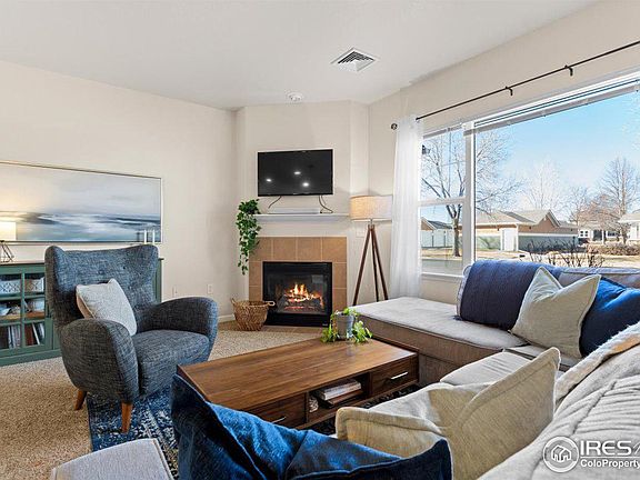 Here's your chance for a recently updated, move-in ready condo in popular south Fort Collins! This spacious, main floor condo boasts 9-foot ceilings, upgraded quartz countertops, cabinet hardware, and backsplash in the kitchen! The cozy gas fireplace is the perfect accompaniment in the winter, and the detached one car garage is a life saver on snowy days! The north facing patio is perfectly shaded in the summer and a wonderful respite from the summer heat, plus you'll love the convenient storage closet on the patio. Enjoy the convenience of central heat and central air for year-round comfort. This large floor-plan is really open, and the layout with the guest bedroom in the front, and the primary bedroom in the rear, creates a great sense of space and privacy for guests, a home office, or a roommate. Nearby walking trails and parks make for a great outdoor experience for all ages. The HOA includes a great neighborhood pool and fitness center, along with exterior maintenance, hazard insurance, water/sewer, cable TV, trash, upkeep of the common areas and snow removal! Conveniently located with easy access to I-25, Costco (via Kechter), Harmony Corridor, Bacon Elementary, Twin Silos Park, and much more! Setup your private showing today!