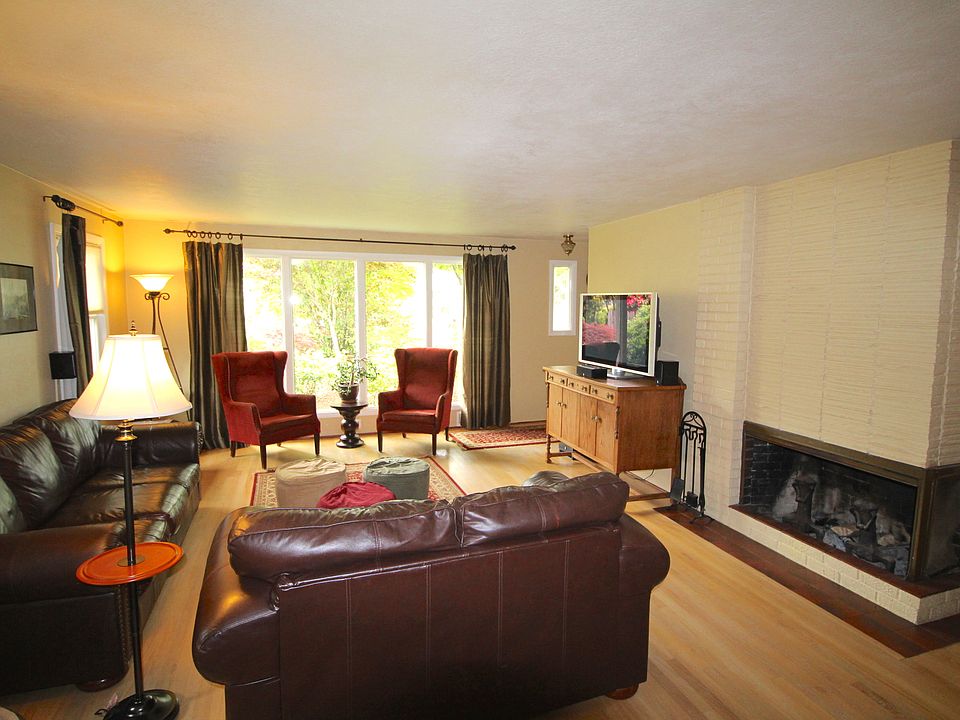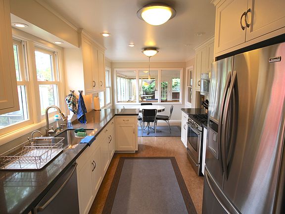 Delightful charming one-level spacious home in a very desirable Ferry St Bridge location! Beautiful inlaid Marmoleum floor & Caesarstone quartz counters, SS appliances, gas cooking, pantry & eating nook in kitchen. Hardwood floors, solar tubes & window walls bring in lots of light. Lovely master with wall of closets & door to patio. Large family room looks out to 2 sunny patios & private backyard with mature landscaping & garden areas.
