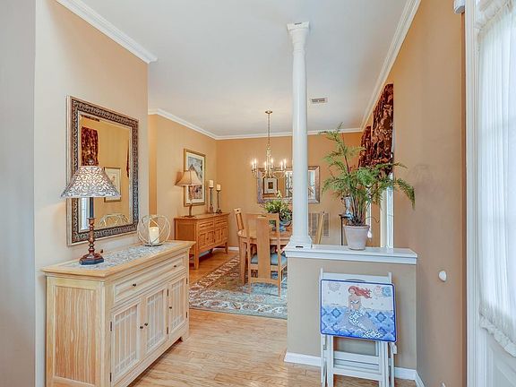 Much desired end unit on premium building lot backing to private wooded park like yard. New 2015 Elegant custom kitchen with center island, full stainless Kitchenaid and sharp appliance package.Hardwood floors in kitchen,dining room & family room.Family room features crown molding,wood burning fireplace,sliding doors to covered patio w/electric awning.Living room has vaulted ceilings & custom blinds.Dining room w/crown molding,decorative columns & custom blinds.Master bedroom features vaulted ceilings,plantation shutters,balcony & 2 walkin closets. Master bath w/Jacuzzi tub,double vanity & custom tile shower.Custom surround sound system in living room,family room,master bedroom & outdoor patio area.Security system installed 2015.See attached list on amenities. New furnace, AC and HWH 2016.