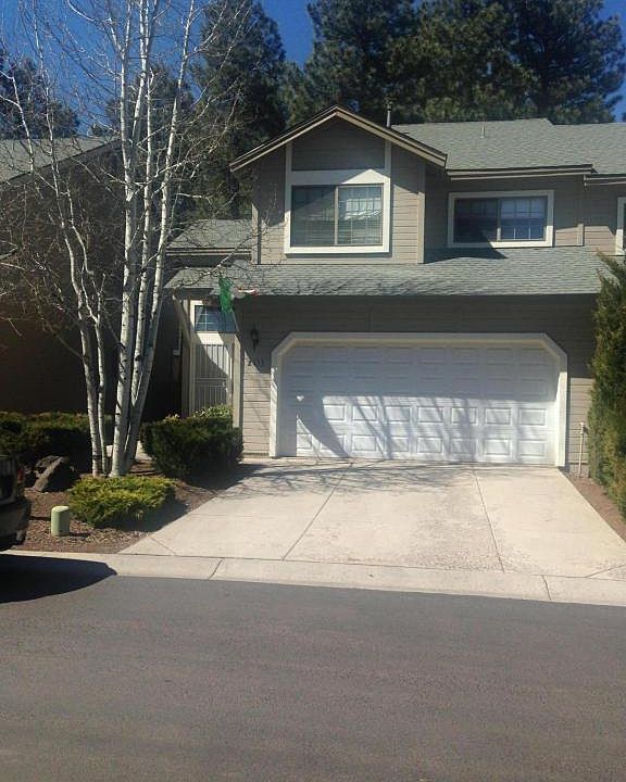 Boulder Pointe Townhome! Lovingly cared for 2nd home since 2004. 3 bedrooms and 2 1/2 baths end unit with the larger floor plan of 1493 square feet. Open great room with vaulted ceilings and tons of natural light. Tranquil neighborhood facing the greenbelt with access to the urban trail, close to NAU, shopping, theater, and Mountain Line transportation. Tall pines in the back yard with a trex deck perfect for bbq's and watching the sunset. Black appliances, granite look formica counters and light oak cabinetry in the kitchen. Light maple laminate flooring in entry way, kitchen and dining area. Ceramic tile in the bathrooms, carpet in great room, bedrooms and stairway. Washer and Dryer and Refrigerator stay.