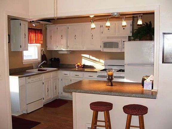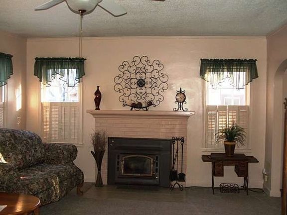 Updated kitchen with modern counter top & sink, new wood flooring, all appliances stay--range,newer refrigerator, dishwasher and built-in microwave. Washer & dryer included. Fresh newer carpet, wood- burning fireplace insert. High Eff furnace, deck. Home has charm in a quaint country club neighborhood with lg trees & friendly neighbors. Deep 181" lot-big backyard. Upper level could be more space or 3rd bedroom.