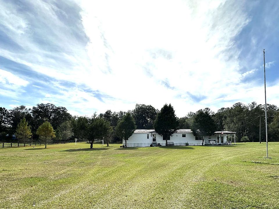 This 3B/3b 1488 sq ft, split plan home on 11 acres has wood fencing around the homestead & field fencing in the rear of the property (owners had animals at one time). Other features include an office w/ a separate entrance, above ground swimming pool right out the back door, wood burning fireplace for those cold winter nights, a volleyball net already in place, and a greenhouse for starting your future garden. The home is not in a flood zone. For lending, please contact Lynette Ellis at Lafayette State Bank at (352)440-8176. NMLS #616309 She's aware of it being a reset.