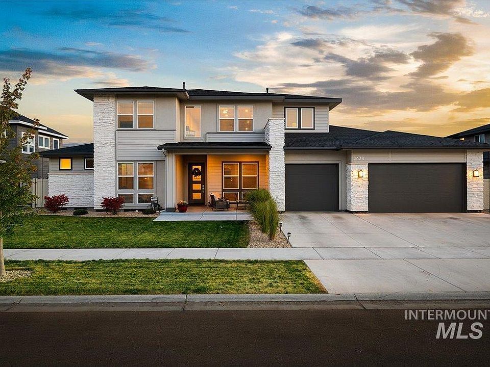 This home is light, bright, spacious with room for everything and everyone. The back yard is large with room for a pool, toys, deck, putting green, you name it! The rooms are large featuring two master suites on the main floor and plenty of space upstairs. Whether you work from home, love to entertain, or want to feel Zen in a beautiful space this is your home. Easy to show. This home is priced below the current comparable homes in the neighborhood. If you are looking for equity this one has it. The neighborhood is a quick jaunt from the new Albertsons and a little further to all of the fun at Eagle and freeway, including new Top Golf location. Quick access to the freeway and restaurants!