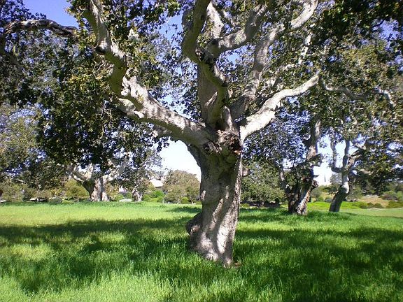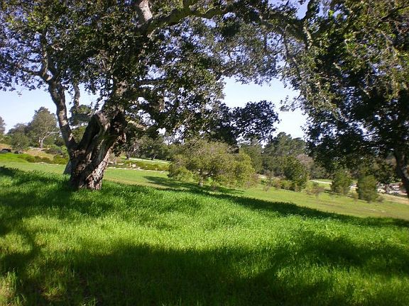 Corner lot dotted with character oaks with a fabulous view of a forested hillside and mount toro.