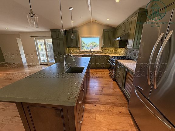 (POWE2) San Carlos Agency, Inc. presents this refreshed, unfurnished, three bedroom, two bath single family home perfectly nestled in Carmel Woods with filtered ocean views. This one level home was completely remodeled in 2016 and freshly painted just recently. The very functional floor plan is open with a large living room connected to a beautiful gourmet kitchen with chef's grade appliances (refrigerator with bottom freezer, gas range with hood, double sink, dishwasher, additional sink in island, and wine fridge). There are three total bedrooms plus an additional office off the living area, and two full baths (one with shower/tub). Hardwood floors extend throughout the home and the living room has a gas fireplace. A large deck sits off the living room with filtered views. A splendid garden and small fenced yard greet you on the way to the front door. Off the driveway is a one car attached garage. Laundry room off the hall with washer (left as a courtesy to tenant). Tenant pays all utilities. ABSOLUTELY NO PETS. No smoking.