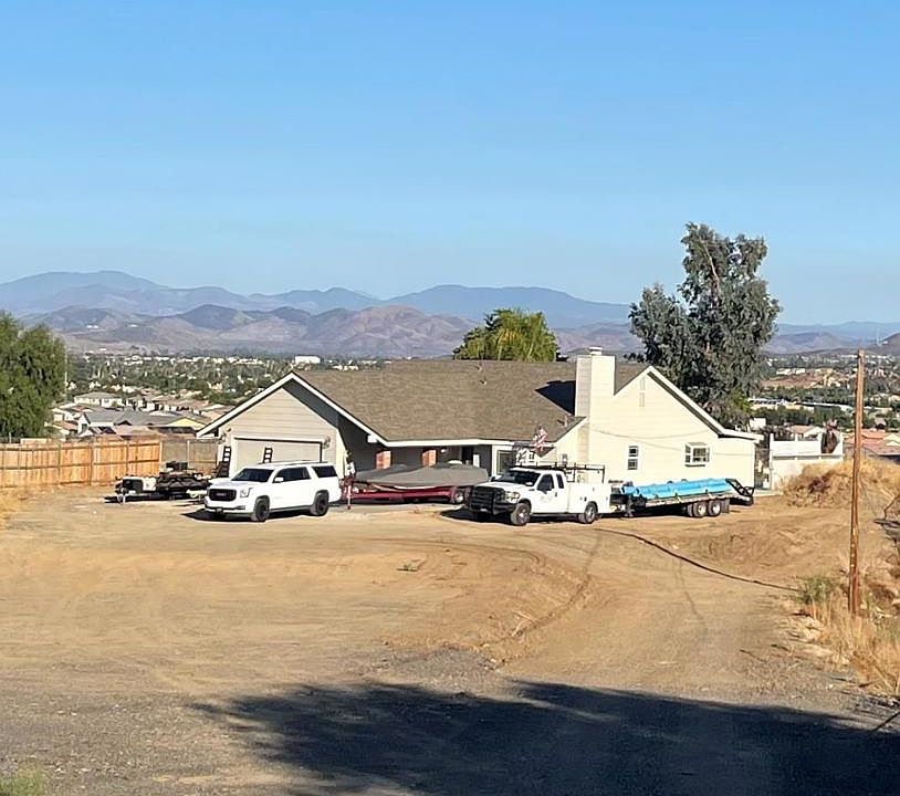 This home is a 3 bedroom 2 bathroom with 1.5 acres. Awesome view of Menifee Valley from the backyard. Custom barbecue area out back with a large patio and cover. Plenty of room to park motorhome, boats, equipment, etc. Bring your horses. Large eat in kitchen, family room is large enough to incorporate another dining table. Ceiling fans throughout, solar, jacuzzi, attached garage.