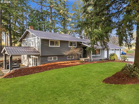 Experience modern luxury in the heart of Helvetia! This 1.77-acre property in Hillsboro offers a beautifully completely renovated 4-bedroom, 3.5-bath home with 2,528 square feet of thoughtfully redesigned living space. Every inch of this home has been meticulously transformed, creating a stylish and inviting retreat. From the studs out, this home has undergone a total renovation, with all new flooring, cabinetry, fixtures, appliances, and fresh paint throughout. As you step inside, the spacious open-concept floor plan greets you with Hickory hand-scraped hardwood floors flowing from the large living room into the dining area and an entirely new, chef-inspired kitchen. Outfitted with 3/4" maple cabinets, sleek quartz countertops, a modern tile backsplash, and a 8-burner commercial gas stove with a double oven, hood vent, and pot filler, this kitchen is a true showpiece. A generous butler’s pantry, with built-in storage and a walnut slab butcher block countertop, provides added convenience and style. The home includes two primary suites with attached bathrooms, perfect for multi-generational living or guest accommodations. The spacious lower-level suite also boasts a beautifully redesigned bathroom with double sinks & walk-in tile shower, and walk-in closet with custom built-ins. Outside, the renovations continue with all-new Hardie siding, beautiful stamped concrete patios, all new landscaping, and a covered patio accessible from the primary suite. The renovated shop is another standout feature, with new Hardie siding, a metal roof, gutters, a concrete floor, insulation, lighting, air plumbing, pellet stove, as well as office space and a full bathroom—ideal for hobbyists or as a workspace. Further enhancing this unique property are themed outbuildings inspired by Knott’s Berry Farm, including a Log Cabin General Store, Boat House Saloon, and S&B Barber Shop. The entire acreage is flat and usable, featuring fruit trees, garden space, and space for future outbuildings.