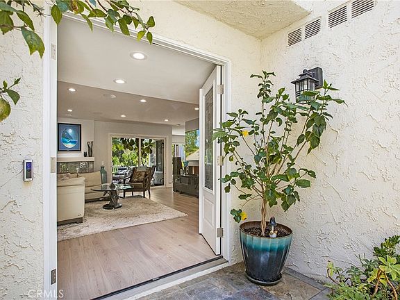 Tucked away in this exclusive, gated enclave with ocean breezes and scenic views. Completely renovated with over $350,000 in high-end upgrades typically found in custom luxury estates. The perfectly landscaped courtyard leads to the custom glass entry doors opening to hardwood Ash flooring and a versatile floorplan that includes 3 bedrooms + Office with a wall of soft close built-ins, rain glass privacy door and skylight that fills the space with fresh air and natural light—ideal for working from home or welcoming guests. The heart of the home is the stunning chef’s kitchen with over $160,000 in carefully considered details from the cabinetry, quartz countertops, illuminated glass shelves and rain glass cabinet doors to the Wolf range, pot filler, Zephyr hood, Wolf microwave, Wolf steam/convection oven, Bosch dishwasher, 2 trash compactors, reverse osmosis system and double pantry with swivel pull-outs designed for maximum functionality. Dining room with large picture window frames the panoramic views of the surrounding hills. The contemporary glass and metal staircase makes an architectural statement with timeless, modern design. The living room features surround sound and fireplace for relaxed evenings or entertaining. Backyard offers plenty of space to entertain and enjoy the coastal breezes. Upstairs, the primary suite serves as a luxurious retreat with a walk-in closet with organizers, private covered balcony and a remodeled en-suite bath that rivals a 5* spa featuring walk-in shower with 3 showerheads—including ceiling-mounted rain shower—dual vanities, marble countertops and privacy door. Two additional bedrooms are generously sized with one offering scenic views. Secondary bath has been renovated with new vanity and walk-in shower with designer details. This home has been thoughtfully upgraded for comfort and efficiency with tankless water heater, new furnace, ductwork, PEX repipe, Hahn water filtration system, water softener, dual-pane windows, LED lighting, new fixtures, insulated garage door, attic fan, upgraded electrical, smart home entry, closet built-in organizers, epoxy garage floors and an extra-long driveway. Community pool and spa are just steps away. Located walking distance to Laguna Niguel Regional Park, minutes from world-class beaches, hiking and biking trails, community center and easy freeway access. This home truly offers the best of So Cal. living. Fully renovated and move-in ready, this is more than a home—it’s a lifestyle.