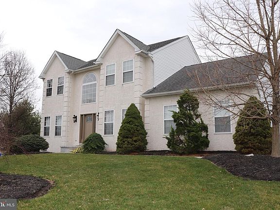 This well cared for Colonial located in New Hanover Township~s Kingston Hill community is ready for you to move in! Owners have a great deal of pride in their home and it shows like a model home both inside and out. The professionally manicured landscaping, accent pillars with lights at driveway, beautiful new entry door and upgraded light fixtures start the excitement of this home. You~ll be welcomed by a two-story foyer with palladium window, upgraded chandelier, hardwood flooring and open to the formal dining and living room areas. The dining room is large in size and has wood trim flooring around the carpet for an upscale look. The living room is accented by a double-sided fireplace that is shared by the family room. The family room is warmed by the fireplace, custom painting, and appealing plantation shutters on the large triple width window. Kitchen has a breakfast bar, tons of cabinets and plenty of room to house an island. Adjacent to the kitchen is the breakfast nook/sunroom which is bathed in sunlight throughout the day and is accented with picture molding, cathedral ceiling and sliding door leading to brand new composite deck with step package. Fabulous layout for entertaining! To complete the first floor is a large pantry, powder room, laundry room with its own service door and the oversized, side-entry two car garage with storage area. Second level continues the surprises with hardwood hallway flooring, master bedroom suite with sitting area, vaulted ceiling, plush carpet throughout, humongous walk-in closet and a master bath with soaking tub, shower stall, vaulted ceiling, double sink and linen closet. The remaining three bedrooms are all large in size with plenty of closet space and another linen closet and a full bath to service them. If this isn~t enough, this property has a full unfinished basement ready to put your personal design to it. Recent improvements in 2018 include new hot water heater, new carpet on stairs and throughout master suite, ne