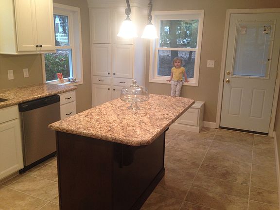 This home is a two-story brick colonial located in a quiet, kid-friendly neighborhood toward the end of a cul de sac. Four large bedrooms are all on the second floor and there are hardwood floors throughout the home (with the exception of the bathrooms and the kitchen and laundry room. The kitchen has extensive storage, with a tall closet for coats, backpacks, and purses, a storage bench for shoes, and a floor to ceiling pantry with pull out drawers for organization and convenience.
