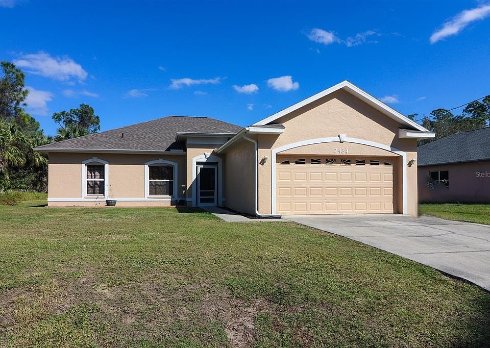 PRICE IMPROVEMENT ON THIS NO FLOOD ZONE NO HOA POOL HOME!! Seller is also offering a $5000 toward the buyers closing costs !!! Great pool home looking for a new owner!! 3 bedroom 2 bath 2 car garage, third bedroom would also make a nice office. This block home only lost a couple shingles during Ian and had no water intrusion!! The owner decided to replace the entire roof! walk in through the front screened porch to the entryway that leads to the open concept living space that has been freshly painted. The 22 x 18 livingroom has a slider wall to the patio and the pool and makes the space even larger. The kitchen is brand new with new granite counter tops, a farm sink, new cabinets and a huge island that has extra storage and provides a spacious eating, game playing, or serving area. There is also a breakfast room that is a nice size and the three bay windows and slider to the pool keep it cheery and full of light. The one side of the home is all main bedroom that offers his and her walk in closets, sliders to the pool, patio area and an ensuite bath with a huge walk in shower and double sinks. Peaceful area that is still close to everything in Port Charlotte and North Port. Here is the best part ALL THE BIG ITEMS ARE NEW!! ...new A/C (warranty will be put in buyers name) , hot water heater, grey life proof wood look floors, carpet, kitchen cabinets and granite counter tops, water softener system, and roof. The pool is approximately 4-5 years old The John Deere riding lawn mower is included and has around 7 hours on it. Septic has been emptied and this house is waiting for you to take a look!! Owner is ready to go so a quick close is possible. Bedroom Closet Type: Walk-in Closet (Primary Bedroom). BUYER IS READY TO MOVE !!