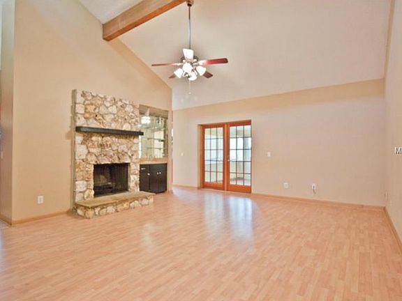 Welcome home to this delightful Wekiva home that has 3 bedrooms, 2 baths and a 2 car garage. Inside you are greeted by the welcoming living room with stone fireplace and wet bar. Soaring ceilings with side skylights make this room bright and open. The kitchen also includes vaulted ceilings and a breakfast bar. The kitchen is open to the dining area that looks out lovely bay windows into the backyard. French doors off of the living room lead to the spacious Florida room that is tiled. The first bathroom includes a shower and a bathtub plus an access door to the backyard. The master bedroom has its own private bathroom with a tiled shower and a large walk in closet. Neutral laminate, carpet and tile are throughout the home. The backyard has a large porch area and is fenced in for your privacy.