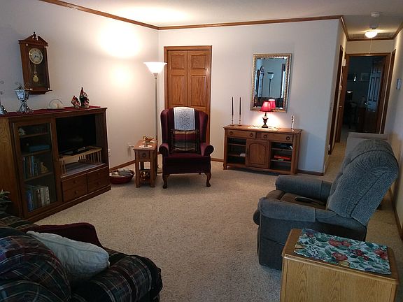 This maintenance-free one-owner oversized condo has been well-maintained and very clean. Kitchen features full wall cabinetry with built-in china hutch. In addition to two large living spaces and the three BRs, a non-conforming bonus room in the basement would make for an ideal office or hobby room. Main-level laundry off of kitchen. The deck off the back adds to the charm. One of the biggest condos in the complex, and also an end unit.