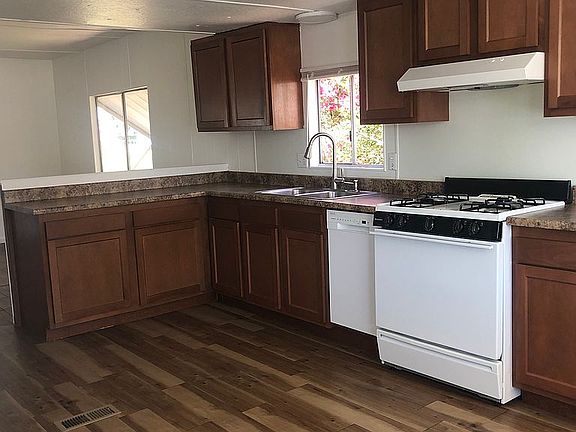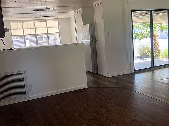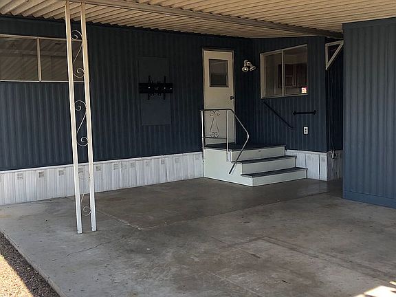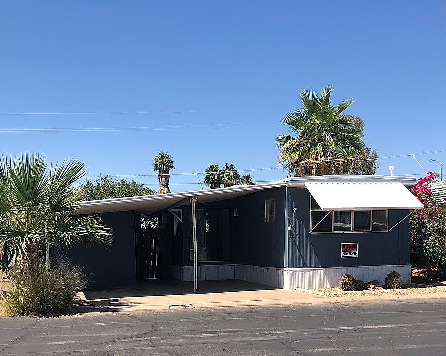 This Spacious Move in Ready 1 bed 1 bath is a Must See with a Spectacular Outdoor Area. This home has central air/heat, a 1 1/2 year old roof with a 10 year transferable warranty and the interior is freshly painted. Eat in kitchen is 16.6x11 and has lots of beautiful wood cabinets, floor to ceiling panty and broom closet. All appliances stay including a dishwasher and gas stove. Living room measures 17x15! You will have no problem fitting a big comfy couch and chairs. This 13.6x9 bedroom can accommodate a king sized bed, night stands and large dresser. The built in closets and dresser provide ample wardrobe space. Bathroom receives morning light making it bright and cheery. Large air conditioned laundry room with front loading washer/dryer has plenty of room to serve duel purpose as possible office, guest or craft room. Covered carport has room for one large and one small vehicle. Onsite RV space is available for an extra cost. The outdoor space has 3 separate storage areas front shed is 8.6x6.6, backyard tool shed is 8x10 with additional storage under the patio stairs. The yard features a 20x17 covered concrete patio complete with flat screen TV wall mount for sports, entertaining or movie night. The fenced in gravel yard is even bigger with a mature orange tree and cactus garden near the tool shed. Perfect for grandkids and/or fur babies. Located in Deserama Mobile Ranch 55+ active adult community. Park amenities include newly renovated heated pool for year round enjoyment. The clubhouse includes large gathering spaces, exercise room ,pool table, library with games and community kitchen. A brand new BBQ area has just been installed and the pickle ball court will be completed soon. The lot rent is $825 per month. All potential buyers must pass a background check, one person must be 55+ and fill out an application with Deserama Mobile Ranch. If You Any Questions About This Property Or Would Like To View The Home Please Call Debbie @ 404-310-7439