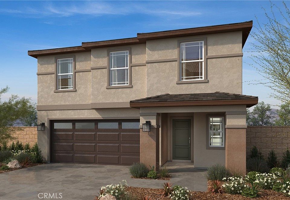 Brand new community in SPRING MOUNTAIN RANCH. This is an all electric home. Home is not yet built and photo is only a rendering of the plan. This is a two story Prairie style home. The entrance leads to an open concept great room with dining and kitchen. Downstairs includes a powder room for your guests, a large Den w/ storage room adjacent to kitchen and a walk in pantry in the kitchen. This home has included features such granite counters, recessed lighting, white kitchen cabinets and a loft upstairs. It also includes a spacious Primary bedroom that has a large walk-in closet and attached bath with duel sinks and walk-in shower and a convenient upstairs laundry room. Buyer is able to personalize if they would like to do so at an additional costs. For example, they could convert the den to bedroom #5, add Quartz counters etc...The front yard is fully landscaped in drought tolerant material and includes an automatic drip watering system. This home is Energy Star rated and Solar must be purchased or leased for maximum energy savings! Walking distance to Spring Mountain Ranch Park, which features a basketball court, sand volleyball court, and BBQ and picnic areas. Near Loma Linda University Medical Center and schools, including University of California, Riverside. Mello Roos is built into the estimated property taxes. Photo is a rendering of the model. Buyer can either lease or purchase the Solar.