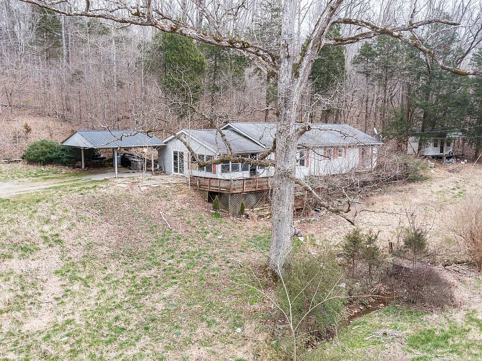 Beautiful and private country setting with over 6 acres. Bring your design ideas to make this 3 bedrooms, 2 bath your dream home! High ceilings, open floor plan, and all one level living. Extra large room sizes. Cathedral ceiling living room. Full fixer upper! A screened in porch to spend hours enjoying. Fresh spring water source. 40x28 workshop/garage with electricity connection. Fabulous rustic barn overlooking the creek. Minutes to the lake. No FHA, USDA, VA. Cash, hard money only