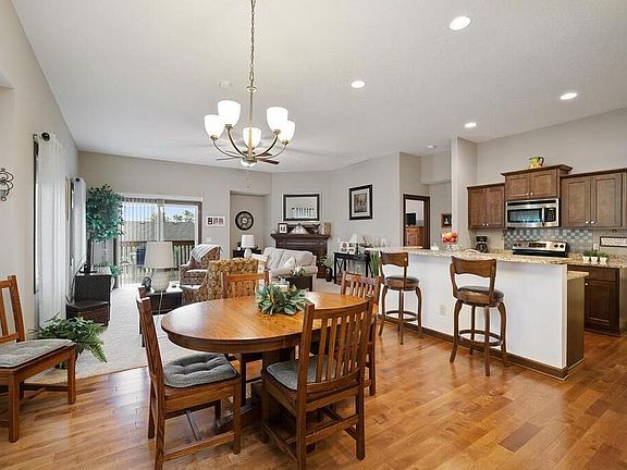 Super nice townhome in immaculate condition. Hardwood floors in the entry, kitchen, and dining room. The kitchen features an island, granite counters, GE appliance, and a pantry. The great room is open and inviting with a corner gas fireplace with nice surround and mantel and has sliders to a deck for outdoor enjoyment. The master bedroom features a vaulted ceiling, double sink vanity, shower, and walk-in closet. A 2nd bedroom/office, full bath, and a laundry complete the main level. The walk-out lower level offers lots of space for future finish and is pre-plumbed for a bathroom. Other amenities: all kitchen appliances and washer & dryer are included, stone exterior accents, vinyl siding, some window blinds, and a new furnace in '17. Convenient to a 172-acre Easter Lake, encircled by a 5-mile paved trail. 5 picnic shelters & 3 children's playgrounds, boat ramp & accessible fishing pier/dock. During the summer, a free-swimming beach provides another wonderful way to enjoy the lake.