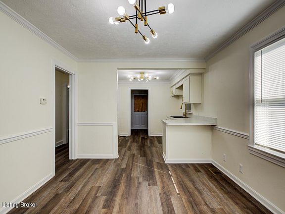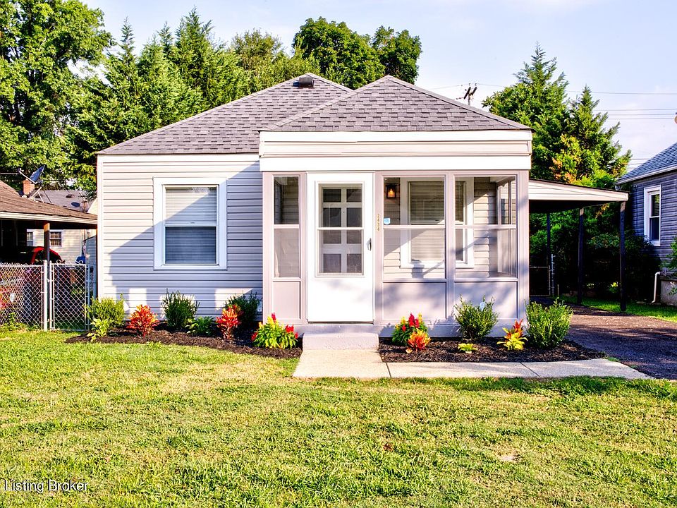Cute, updated home featuring: All new flooring, light fixtures, bath, kitchen, water heater, and more!!! There are 2 bedrooms, one bath, kitchen with breakfast bar, laundry room, living room, enclosed front porch. All blinds included. Looks like new construction!!! Oversized one car garage, carport and the driveway has been recently resurfaced. Pretty landscape! Close to the U of L stadium and Churchill Downs. This nice home could be a great the first time buyer home or rental. Hurry to this one!!! NOTE: The back door glass had a crack in it and is on order to be replaced. Possible owner financing.