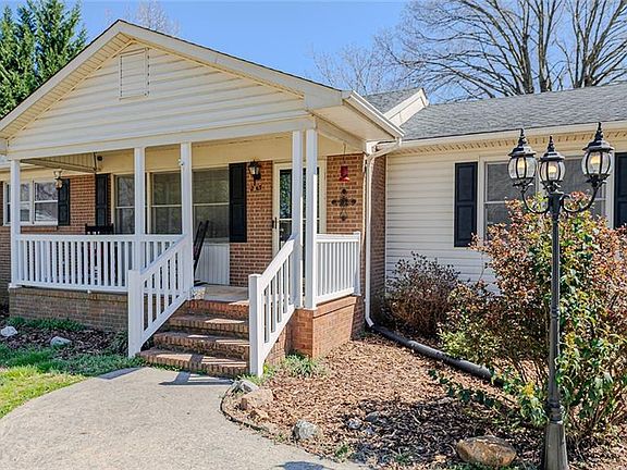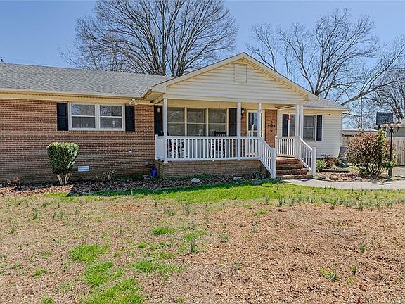 Now offering a Seller Paid Home Warranty and up to a $2800 lender incentive!! This charming ranch-style home offers timeless appeal with its expansive rocking chair front porch, perfect for relaxing afternoons. It also features a large den with fireplace, wood beams with sliding glass doors leading to the back patio. The kitchen is a chef's delight, featuring ample cabinetry and an eat-in area, complemented by a separate formal dining room complete with a stunning Belton buffet. The spacious master bedroom includes custom built-ins, adding both character and functionality. Original hardwood floors flow throughout the home, adding warmth and authenticity. Step outside to a large, fenced backyard, complete with a garden area and a patio, ideal for outdoor gatherings and gardening enthusiasts. The outbuilding in the backyard is wired. This home is a perfect blend of comfort and classic charm!