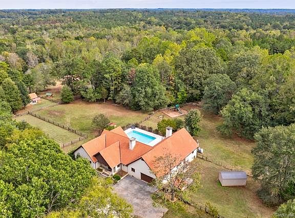 Travel down the tree canopied drive and you are immediately impressed; turn the corner to the European ranch home and it really sinks in--you could be home. The home, pool, guest house and barn are nestled on the private 21 acre parcel. With a view of the pool from almost every room, this home is designed for entertaining, or you can have it all to yourself. Split, open floor plan with guest wing, private master suite w/fireplace and large bathroom, oversized laundry/mud room, movie room, open kitchen concept, opening to keeping room and dining room. 4 fireplaces w/double fireplace between the great room and dining room. Cathedral ceiling great room w/"wall of glass doors" opening to covered patio and pool patio. Guest house has its own separate electric meter and septic, which could be used for a tenant or guest. Barn currently has 4 stalls & 3 additional stalls could be added under roof. It also has an office area and large loft for storage. Riding trails along property perimeter.