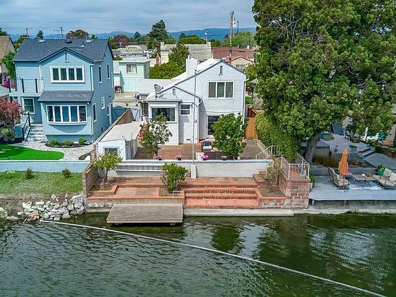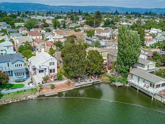 Welcome Home! Serene & Tranquil describes this home to a T! Located in Alameda's east end, this charming 1939 period style home offers many amenities of its era. Upon entering, you step into the sun-filled living room with a romantic corner fireplace. A beautiful vaulted wood beam ceiling & wood pane windows bring warmth & beauty. The formal dining room offers random plank flooring and a wood beamed ceiling and plantation shutters. From here you have a peek of the lagoon. A period swinging door leads to the large kitchen & eating nook. Here you can sit and relax in the morning with your coffee overlooking the peaceful lagoon. In addition to the two bedrooms upstairs there are two additional rooms on the lower level that can be used as addition sleeping rooms, den, office or Au Pair room. There is a convenient full bathroom/laundry room on this floor. The large patio has two pear trees and a large walk in shed. You can also tie your canoe to the deck. Walking distance to shopping.