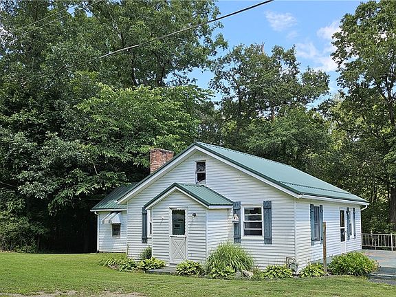 Welcome to this charming home with private, wooded back yard! Large country kitchen with even bigger formal dining room! Livingroom, den/office, three bedrooms and full bath complete the first floor. Hardwood floors in LR and DR Freshly painted interior, brand new updated bath and new carpet throughout! Updated electric panel Spacious concrete patio for outdoor living space with integral garage underneath. Full walk out basement - all on over 2.7 acres!!