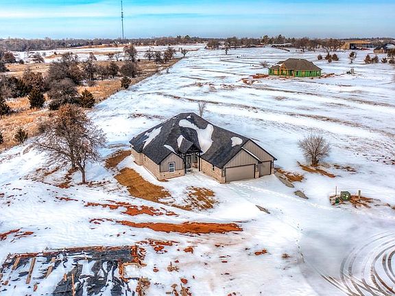 Discover refined country living in this stunning 1,960 sq ft modern farmhouse, perfectly positioned on a serene 0.84-acre cul-de-sac lot in Blanchard's highly sought-after Wolf Creek Estates. Thoughtfully designed and expertly crafted, this brand-new home offers the ideal blend of luxury, comfort, and contemporary style. Featuring 3 spacious bedrooms, 2 beautifully appointed bathrooms, a dedicated office, and an expansive dining area, this residence provides room for both relaxation and productivity. The open-concept layout is elevated by high vaulted ceilings that create a bright, airy, and exceptionally spacious feel throughout. Step inside to find gorgeous modern finishes, including beautiful designer tile, wood-look flooring in the main living areas, and elevated selections that bring warmth and sophistication to every room. Gather around the cozy living room fireplace for quiet moments, or unwind outdoors on the inviting covered back patio, where evenings are peaceful and private. With nearly an acre to call your own, there’s plenty of room to add a shop, garden, or outdoor living features tailored to your lifestyle. This Wolf Creek Estates beauty is the perfect retreat—modern, stylish, and built for the way you live. Don’t miss your chance to call this extraordinary new construction home.