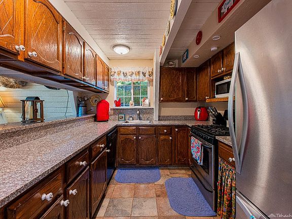 Fantastic, home on the valley floor of beautiful Bear Valley Springs! This home has a gigantic open living room with amazing mountain views. Nicely updated kitchen and new roof along with two bedrooms and a large upstairs loft complete this fantastic mountain retreat. Enjoy the serenity outdoors on the expansive deck surrounding the back and sides of the home under a canopy of mature oak trees, affording nature at its best. With over an acre, feel free to bring your horses as one of our infamous Bear Valley trails runs right along side the property for your riding or hiking enjoyment. Enjoy use of the large detached garage with ample parking or work space. The home is situated towards on the valley floor, close to all amenities for easy enjoyment, including Olympic sized swimming pool, Country Club, gym, restaurants, golf course, lakes, equestrian center, hiking/riding trails and so much more.