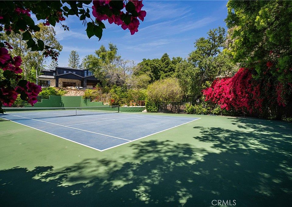 Gorgeous new estate sited on nearly 2.5 acres of mature trees and superbly private grounds. Nestled on a quiet cul de sac, highlights of this beautifully built residence include an open floor plan that's perfect for relaxed family living and gracious entertaining. Features include a superb chef's kitchen with two islands & sunny breakfast room, opening to the spacious family room with stone fireplace and huge picture windows overlooking the lush grounds. Additional amenities include both formal living & dining rooms, a lounge with wet bar, a glass encased, refrigerated wine room, a beautiful custom office, a deluxe home theater, a gym/wellness center with both steam shower & sauna, and a second, upstairs den. All six bedrooms in the main house are en suite, and the primary suite is a true statement of luxury with dual all stone baths, two generous, room-sized custom closets, a two-sided, floor to ceiling fireplace, and an expansive walk-out balcony, all nestled amongst mature oak & pine trees. The amazing grounds also include your own private tennis court, a sparkling infinity edged pool and spa, covered patio with barbecue center, and a one bedroom guest house set on it's own pad with a large grassy lawn area, plus a 4-car garage with loads of off additional off street parking. With a wonderful, center of Hidden Hills location, close to highly regarded public and private schools, and just minutes from The Common's Shopping Center, this home has much to offer.
