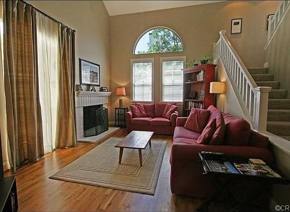 MODEL PERFECT END UNIT 2-STORY TOWNHOUSE! Spacious & highly sought-after floor plan offering 3 bedrooms & 3 bathrooms, including a main floor bedroom & bathroom and second story with dual master suites, large living room boasts soaring cathedral ceilings, formal dining room, gourmet kitchen with newer & upgraded fixtures and recessed lighting, two-car attached garage, large enclosed yard with tile accented patio area, planters and view of lush greenbelts! $474,900