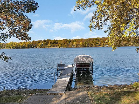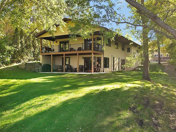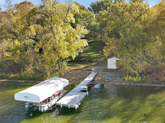 Make memories at your new year-round home on Rice Lake! The home is nestled in the trees with panoramic views of the lake. The property has a unique floorplan that allows easy lake living. There are 3 main-level bedrooms including the primary suite that has its own private covered deck. The lower level features an open-concept kitchen, dining, and living room that walks out to the lakeside patio (which could easily be screened in). Enjoy 173ft of prime lakeshore. 2-car attached garage, + heated 20x32 shop for hobbyists and DIY enthusiasts, with additional lakeside shed for all your lake toys. Well-maintained home with new roof, septic cert. completed, & dock included. Soak in the beauty of nature from every corner of this home. Call for your private showing.