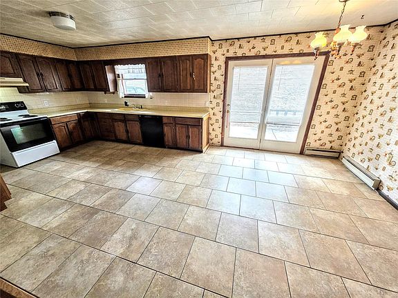 Welcome home to this spacious and charming open floor plan brick ranch 3bd/1.5bath with 1372sqft on main floor and 2,744 total sqft, offering endless possibilities! This home has an oversized basement family room, perfect for gatherings or potential additional bedrooms. Enjoy the warmth of two fireplaces, including one with a powered forced air wood stove, ensuring comfort throughout the seasons. The main floor features a convenient laundry hookup in a bedroom, making daily chores a breeze. A basement safe and dedicated storage room provide extra security and organization. Step outside to the modern detached 3-car garage, a true standout with sleek glass roll-up doors—ideal for car enthusiasts, workshop space, or extra storage, the home and shop sit on 2 large lots that are selling together. With its generous layout and flexible spaces, this home is priced right and ready to be tailored to your needs.