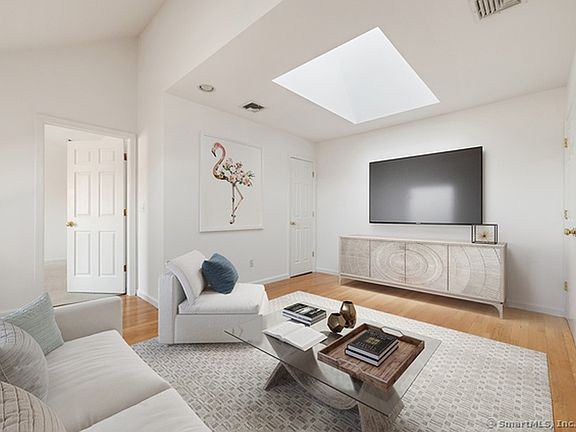 Welcome to your new residence in the beautiful and vibrant gated community of Chesterfield! This delightful 2-bedroom, 2-bathroom townhome is conveniently located within proximity to Ridgeway Center, Downtown Stamford, and Bulls Head shopping centers. Upon entering, you will appreciate the inviting main level, featuring a vaulted ceiling, hardwood floors, and a modern kitchen island. The main floor includes a bedroom that opens to a charming private balcony, along with a full bathroom accessible from both the bedroom and the living area. As you explore upstairs, you will find a versatile open loft with skylights, providing an ideal space for a home office, workout area, or any use that suits your lifestyle. The generously sized primary bedroom includes an en-suite bathroom complete with a soaking tub, separate shower, double vanity, and a walk-in closet with convenient pull-down attic access for additional storage. Further enhancements include an assigned garage space, access to the community pool, and ample parking for both residents and guests. You will also appreciate the convenience of laundry facilities located in the loft area. This is an excellent rental opportunity that is not to be overlooked!