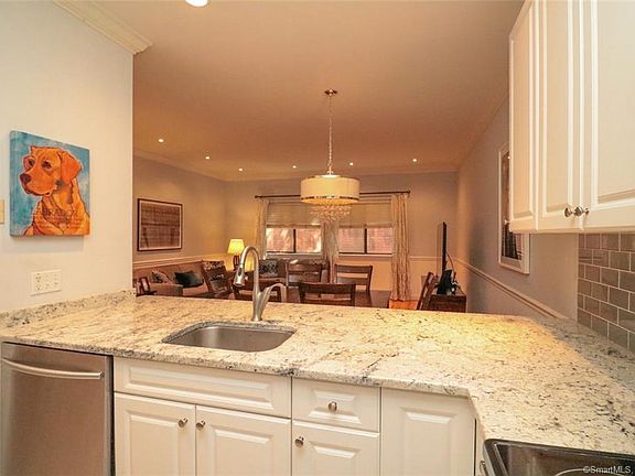 Absolutely gorgeous one level unit in coveted Chesterfield Condominiums. Beautifully updated kitchen with granite countertops, stainless steel appliances and elegant tile backsplash is open to the spacious living room and dining area. Gleaming laminate flooring, recessed lighting, custom molding and 9 foot ceilings. Master bedroom with customized walk in closet and sliders leading to a private patio. Newer washer, dryer and heat pump. Loads of storage and oversized closets throughout the unit, in addition to a private secure storage area in the garage. Two pools and a clubhouse in the complex (currently closed due to Covid restrictions). 24 hour security and beautifully maintained grounds. Walking distance to shopping, restaurants, health club, Scalzi Park, Golf Course and many other downtown Stamford attractions. Public transportation at your doorstep. $300 move in fee due at closing.
