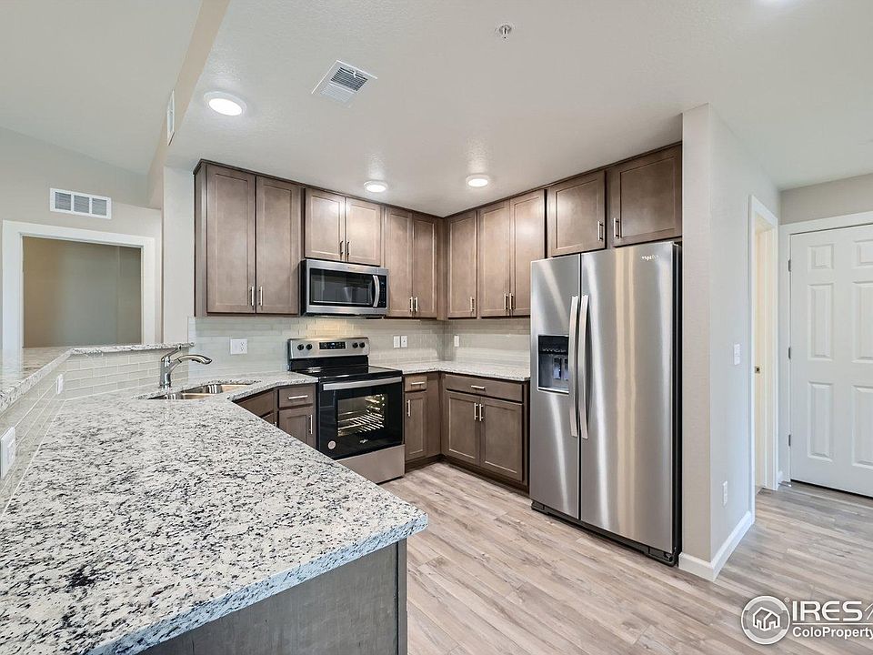 Look no further, you found it! $12.5k seller concession on this gorgeous, ready-to-move-in condo! Located in 18 at Ute Creek - Longmont's newest condominiums featuring: ATTACHED 2-car garages, granite countertops throughout, 42" birch cabinets, lots of light, stainless steel appliances, 5-piece primary baths, high-efficiency furnace, A/C and more (see documents for full list of standard features). Photos are of actual unit and have been virtually staged to show interior design possibilities. Other floor plans available ranging from 1bed/1bath to 3 bed/2 bath, all with 1-2 car garages, priced from $409,750 to $514,750 (final prices). In Northeast Longmont off Pace/66th, you are close to shopping, restaurants, bike trails, open space, Union Reservoir, and just around the corner from Ute Creek Golf Course.