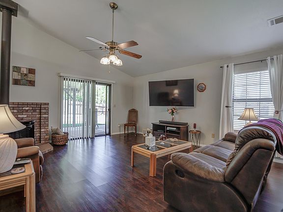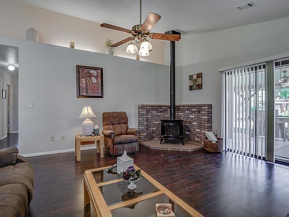 CLEAN AS A WHISTLE this lovely well maintained home boasts pride of ownership. With 1531 square feet, the inviting open Great room has dining area, easy care laminate floors, lots of light & handsome enameled, freestanding gas stove. Efficient kitchen with updated appliances, solid surface countertops, quality cabinets & cozy breakfast nook. Spacious primary suite with walk in closet & slider to back yard, double vanites in bath & stall shower. Two nice sized addtitonal bedrooms & guest bath with tub/shower. Interior utility room with good storage leads to attached 2 car garage plus addtional slab for off street parking. Covered back patio offers year round outdoor living. Well groomed yard with custom pergola, flower beds, and lush lawns. Additional features include 12' by 24' shop with 220 power,RV parking in backyard with access gate. All on corner parcel in County Village subdivision. Many upgrades through the years. Take a look!!!