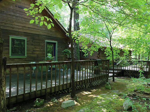 A true mountain cabin in the woods of Clifftops. Spacious family room, 28 x14 front porch, open decks along the rear, separate master suite, 3 bds, 2 baths. Log cabin with newer roof, mountain stone, fireplace, den with skylights and windows.