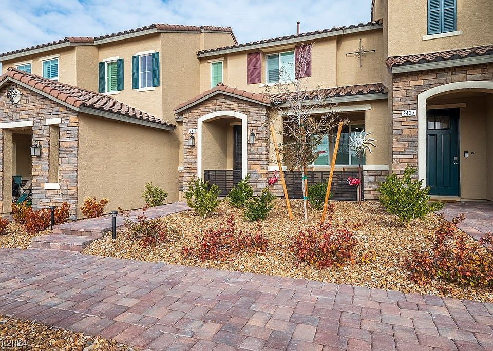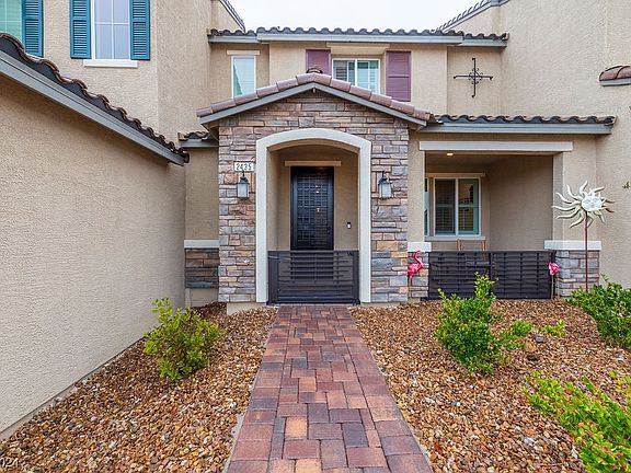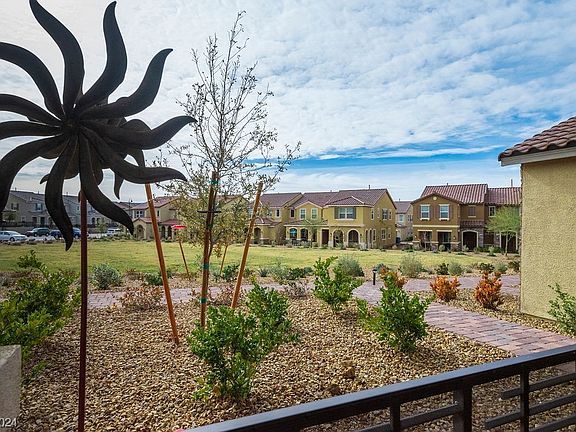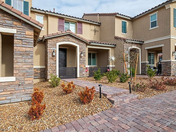Beautiful 2-bed, 2.5-bath townhouse, located in the desirable Inspirada neighborhood, with a park as your front yard! The open floor plan on the main level provides plenty of space, with kitchen, dining, and living areas seamlessly integrated and tile throughout the first floor. The kitchen boasts stunning quartz countertops, backsplash and stainless steel appliances, providing a sleek and modern look. The dining area is perfect for nice quiet dinners or hosting guests. The house has no carpet! Waterproof luxury vinyl plank flooring on the second floor! Upstairs, you'll find 2 spacious primary suites with ample closet space. This home has a 2-car garage with plenty of storage racks added to the ceiling. Owner added for $6k the front courtyard fencing and security door. Located close to outdoor activities, including hiking and biking trails, parks, community pools and sports venues, perfect to keep your kids entertained! This home is the perfect place to call home. A must see!