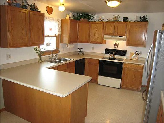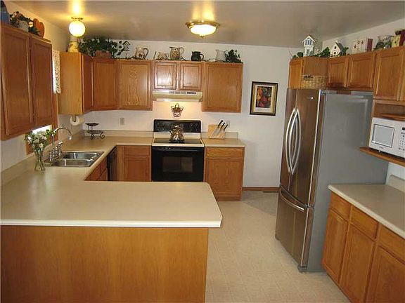 Light, bright & spacious ranch style floor plan with 3 bedrooms & 2 baths (access to bath from master bedroom). Main bathroom offers dual sink vanity. Approximately 2356 (+/-) finished square feet, kitchen with breakfast bar, nice sized dining area & access to the delightful sun room with views to backyard. The lower level family/rec room features a kitchenette/wet bar, den with closet, bath & storage. Nice size yard, deck, newer shingles (2010) and oversized 2 car garage. Located close to schools, parks, shopping & HWY 100.