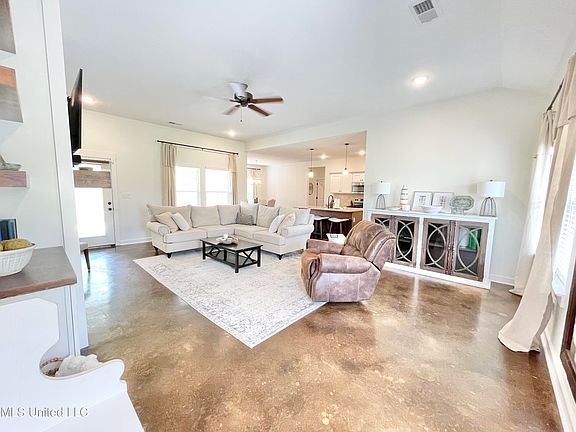 The sellers of this Beautiful 3 bed 2 bath house on 1.8 acres is getting relocated! This home has an open and split bedroom floor plan. Stained concrete floors throughout. The den has built ins and a fireplace. It is open to the eat in kitchen with granite countertops, stainless steel appliances, center island, and a huge walk in pantry. The master suite has a separate tub and shower, double vanities with granite tops, and a large closet that is connected to the laundry room. The other 2 bedrooms are spacious and they share a large bathroom. Outside there is a nice front porch, 2 car garage, covered back patio with a large concrete area, and a fenced in back yard. The back yard goes into the trees past the fence. Make an appointment to see this stunning home today.
