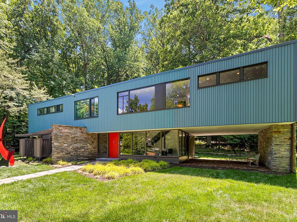 Here’s your chance to own a property that is part of The International Style of Modern Architecture history. This spectacular glass, steel & stone Mid-Century Modern home was designed by internationally recognized architect George Daub (1901-1966) & built in 1950 for regionally recognized architect Warren Beltz (1920-2011). George Daub was internationally recognized in the landmark 1932 MoMA “The International Style: Modern Architecture since 1922” exhibition. George Daub was hand-picked by renowned architect Philip Johnson (1906-2005) as 1 of the select few architects including Richard Neutra & Frank Lloyd Wright to represent the U.S. in the exhibition alongside Walter Gropius, Le Corbusier, Mies van der Rohe & Marcel Breuer to name a few. George Daub practiced at a pivotal time in architectural history, contributing to the American adaptation of The International Style of Modern Architecture as it moved from its birthplace in Europe to the U.S. in the late 1920s. Located in the always sought-after Huntingdon Valley & A-rated Upper Dublin School District. The home is situated for optimal light & serene views from the walls of windows onto a 1.3-acre lot in an extraordinary setting that is your own private nature preserve w/ native trees, plants, pollinators, birds, owls & wildlife. This significant early modern home has a remarkable feeling of integrity, with the preservation of original details to a level rarely seen. The original kitchen & baths remain in remarkable MCM condition. Details such as the original: Brazilian Rosewood cabinetry in the kitchen, Blue Formica countertops, GE double wall ovens, cooktop & range hood, floor-to-ceiling PA Fieldstone fireplace & walls, Cantilevered Red Pine staircase & rear deck, Cedar & Douglas Fir wood paneling, built-in cabinetry, millwork, doors, rectangular & square bath tile installed vertically is as modern looking as ever & their Baby Blue & Pink colors ironically get the most likes & followers on Instagram today. It is rare for a home to have so many original details intact throughout which enhance this architectural gem. A stone wall draws you into the entry, dramatically cutting through a glass wall. As you head up the stairs, you come to the wide-open living & dining rooms. The walls of windows create amazing light & bring the outside in. The rear deck adjoining the living room & kitchen overlooks the private & magical woodland. Views from the eat-in kitchen are stunning in every season. Original built-in wood cabinetry, wall of closets & vanity desk enhance the Primary bedroom w/ an En Suite full bath. The main floor has a den, a private office, Cedar Closet, another full bath & 2 large additional bedrooms. The 4th bedroom w/ a large sitting area is on the ground level w/ original wood paneling & views into the yard. The 4th bedroom is currently being used as a family room, 2nd office & fitness studio. The 4th bedroom can be turned into an In-Law/Nanny suite & a 3rd full bath. The ground level has a 1/2 bath, laundry, lots of storage & multiple doors leading to the patios & the yard, perfect for pets, kids, your next BBQ or party. The home is great for entertaining, guests park on Overlook Ave. Restored & updated inside & out: just professionally painted interior & exterior, new EE White TPO roof, 2 zone: HE Lennox gas heating & central air systems & Bradford White gas HWH's, 200 amp electric, Tesla/EV charger, 30 amp generator inlet box, landscaping/lighting, sod, driveway, Bluestone walkways, Stone garden walls, Brick patio, LED lights, air duct cleaning, fireplace refinishing, Low-E Pella windows. refinished & new hardwood, Forbo floors & more. Easy access to: Whole Foods, Trader Joe’s, Target, HVCC, Pennypack Nature Preserve, restaurants, shops, cafes, schools, hospitals, 276, Old York Rd, 3 minutes to Willow Grove SEPTA train station (Warminster line to Center City). The home is being offered for sale fully furnished. All showings begin at the Open House.