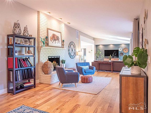 You donât want to miss this midcentury modern home in desirable southwest Reno! Completely remodeled, this 1984 ranch style estate boasts 5 bedrooms, 2.5 baths and open living areas all on a single level! 3150 sq ft and no expense spared. Blonde engineered hardwood, neutral paint, and modern finishes throughout. Kitchen opens to all living areas & backyard with quartz counters, stainless appliances and induction cooktop. Living room has gorgeous herringbone brick woodburning fireplace.