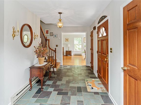 Welcome Home! This stately 4 bedroom 2 and a half bath colonial home has been well cared for by its original owners and is being sold for the first time since it was built. You'll fall in love with this property from the moment you turn onto Fox Run Way, a private lane with only a handful of homes giving all the peace and tranquility one could ever want on. The eye catching horseshoe driveway gives this home lots of parking options and incredible curb appeal. Upon entry you'll be greeted with a large foyer with dining room on the left and living room on the right with a wood burning fireplace. Attached to the living room through french doors is the sunroom, making it the perfect place for those with a green thumb to have an indoor oasis, much like the current owners do or to relax and take in nature while enjoying a cup of coffee or a meal. Rounding out the main floor is a laundry room, eat in kitchen and family room with the homes second fireplace and built in shelving. Upstairs you'll find 3 spacious bedrooms, hallway full bathroom, a large hallway closet for extra storage and the primary bedroom with it owns private bathroom. This home showcases pride of homeownership everywhere you turn, from the gleaming hardwood floors to the brand new roof giving the next owner added piece of mind. If the expansive 13 acre piece of paradise isn't enough room to explore, there is a nature preserve with added trails just down the road.