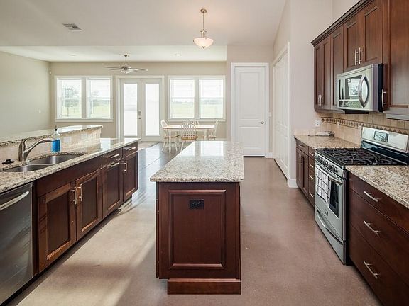 Welcome to this stunning 3 bedroom, 2 bathroom home with 3,387 sq ft of living space on 5 acres! The home has an attached 1-car garage and a spacious detached 2-car garage/workshop. The gorgeous tree-lined driveway leading up to the home creates a private and welcome feeling. Enjoy gorgeous sunrises from the quaint front porch or watch the sunset from the back patio. There is a grand entrance with 8 ft doorways and 10 ft ceilings leading to the open floor plan and all adorned with mixed tinted concrete flooring and boasting tons of natural sunlight with breathtaking views. The modern kitchen is a chef's delight with solid counter tops, soft touch doors & drawers, an extended island, pantry, and all ss appliances. Other features include sprayed insulation in all the walls & rafters, hardie board siding, custom fit blinds, and hurricane impact glass & security system on all windows and doors. The master bedroom includes its own private on-suite master bathroom with a large vanity and walk-in shower stall with bench. For your convenience, there is an inside utility room with built-in upper and lower cabinets including a soak sink with room leftover for storage. This is a must see home to appreciate!