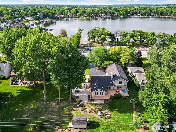 Experience the charm of lakeside living! This meticulously maintained home offers a perfect blend of comfort, luxury, tranquility, and recreation. Situated on two parcels totaling .70 acres directly across from access to beautiful Crystal Lake, a sandy beach, and a convenient boat launch. This spacious property offers 4+ bedrooms, 3 full bathrooms. Hardwood floors throughout the main level. Vaulted ceiling and wood beams in the living room. 2 fireplaces with see through living room and family room. The heart of this home is the large kitchen featuring a huge center island with a breakfast bar, Subzero refrigerator, double ovens, downdraft retractable vent system, warming drawer, trash compactor, and under-cabinet lighting. The adjacent formal dining room, adorned with built-ins and breathtaking views of the lake. The kitchen opens to a spacious sunroom designed for year-round enjoyment, boasting rain-sensing electric skylights, 6 sliding doors, ceiling fans, and ceramic tile flooring. The main level also features a bedroom and a convenient mudroom with a one-year-old washer and dryer. Step outside to a backyard retreat featuring a perennial garden, shed with electric, and an invisible fence system. The wraparound composite deck with a hot tub offers a perfect spot for relaxation. An outdoor kitchen with a sink, gas grill with 2 burner cooktop, and lighting invites you to indulge in al fresco dining. The deep 3-car attached garage is heated and finished, providing ample space for vehicles and storage. Close to a Randall Road shopping corridor, lively charming downtown area, highly rated schools, 3 beaches, parks, trails, shopping, dining, Metra train, and I-90. The roof, gutters, gutter guards, and exterior paint updated 6-7 years ago. Inside, 2 furnaces ensure optimal comfort - the lower furnace just 2 years old, complete with a humidifier. Additional features include a water softener, 2 sump pumps in the concrete crawl space, and in-ground sprinkler system on both lots. Don't miss this lakeside retreat with a view!