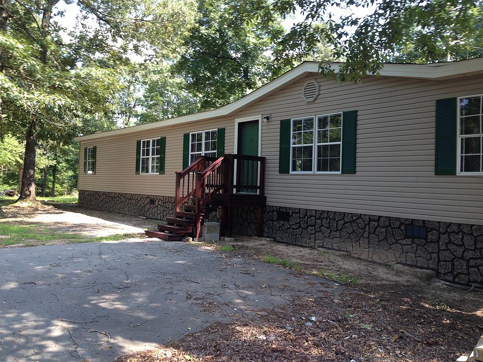 4 bedroom, 3 bath with large family room, separate dining room, kitchen and breakfast room, large master bedroom with large master bath with separate tub and shower, 2nd master BR with its own bath plus two more bedrooms that share a 3rd bath. Two acre corner lot with a circular asphalt drive sitting on a hill over looking a quiet country road. Several small out buildings, mostly fenced back yard and plenty of trees.